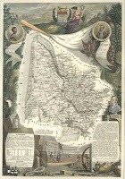 Creativity of cartography extends to the elaborate decorative narrative in Levasseur maps of the departments of France and her colonies. The ornate decoration included historic statistics, important people from the region, and trades and produce. Some of the most elaborately decorative maps ever published are the antique maps of the French Departments and Colonies by Victor Levasseur.