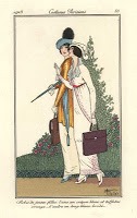 Journal des Dames et des Modes - Costumes Parisiens began the custom of presenting designers' fashions in appropriate settings. Each charming scene tells a story of elegant behaviour and a privileged lifestyle. These delightful fashion illustrations captured the spirit of the era when they were painted.